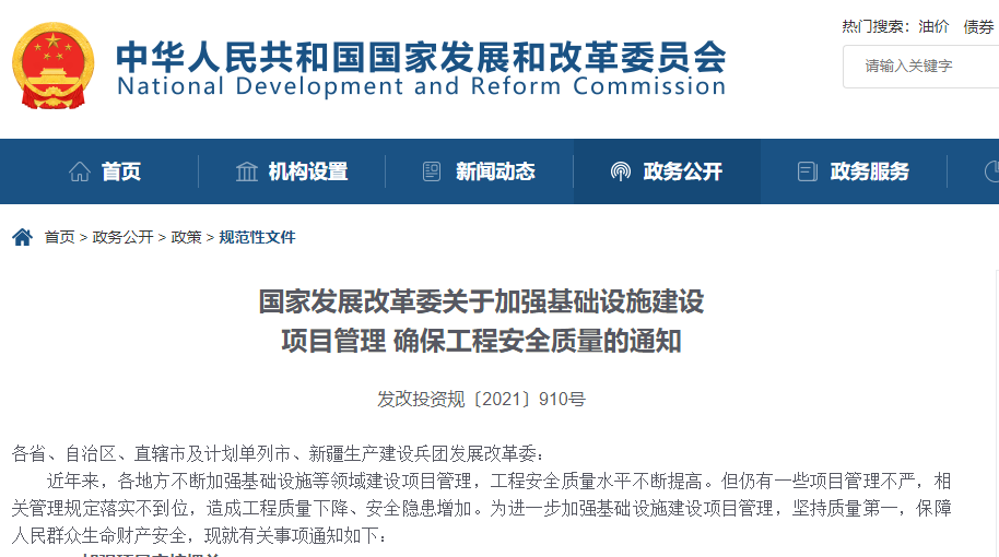 行業(yè)資訊 | 嚴(yán)格管理!國家發(fā)展改革委印發(fā)《關(guān)于加強(qiáng)基礎(chǔ)設(shè)施建設(shè)項(xiàng)目管理確保工程安全質(zhì)